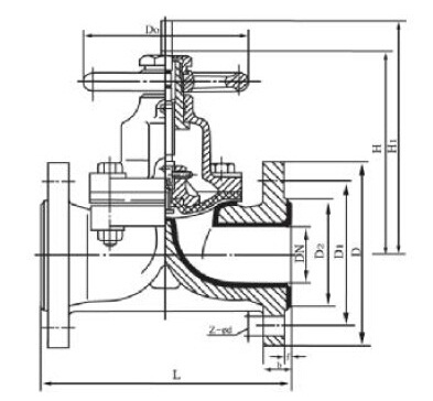 襯氟隔膜閥基本系列為全襯里G41F46、EG41F46、型堰式和G45F46型直流式。復(fù)合隔膜閥將閥體下部內(nèi)腔與閥蓋內(nèi)腔隔開,并與之形成直流通道,使隔膜上部的閥桿、閥瓣等內(nèi)件與介質(zhì)完全隔離,省去填料密封結(jié)構(gòu),介質(zhì)的內(nèi)漏和外漏可同時避免。表面均勻包覆一層FEP。閥體通道內(nèi)表面光滑,流體阻力小,CV值高,流通能力強,扭矩適中,采用四級密封結(jié)構(gòu)并在密封面外配以耐溫抗老化的SI橡膠的彈性襯墊閥座,完全達到介質(zhì)的零泄漏。