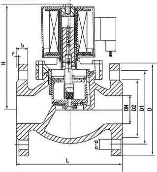 本閥為分步動(dòng)作直接先導(dǎo)式電磁閥,可根據(jù)斷電時(shí)所處開、關(guān)狀態(tài)的不同,可分為常閉式電磁閥和常開式電磁閥。常閉電磁閥,線圈通電后,銜鐵在電磁力作用下先帶動(dòng)副閥閥塞提起,主閥閥杯上的流體經(jīng)副閥流走,減少了作用在主閥閥杯上的壓力,當(dāng)主閥閥杯上的壓力減少到一定值時(shí),銜鐵帶動(dòng)主閥閥杯,并利用壓差而使主閥閥杯開啟,介質(zhì)流通。線圈斷電后,電磁力消失,銜鐵因自重下落復(fù)位。同時(shí)依靠介質(zhì)壓力,主副閥得以緊密關(guān)閉。常開電磁閥,線圈通電后由于吸力作用,動(dòng)鐵芯下移,把副閥閥塞壓下,副閥關(guān)閉,主閥閥杯內(nèi)壓力上升,當(dāng)壓力升到一定值時(shí),主閥閥杯的上下壓差一樣,由于電磁力作用,動(dòng)鐵芯推動(dòng)主閥閥杯下,壓緊主閥閥座,閥門關(guān)閉。線圈斷電時(shí),電磁吸力為零,副閥閥塞和動(dòng)鐵芯由于彈簧作用向上提起,副閥打開,主閥閥杯上的流體經(jīng)副閥流走,減少了作用在主閥閥杯上的壓力,當(dāng)主閥閥杯上的壓力減少到一定值時(shí),利用壓差把主閥閥杯推起,主閥打開,介質(zhì)流通