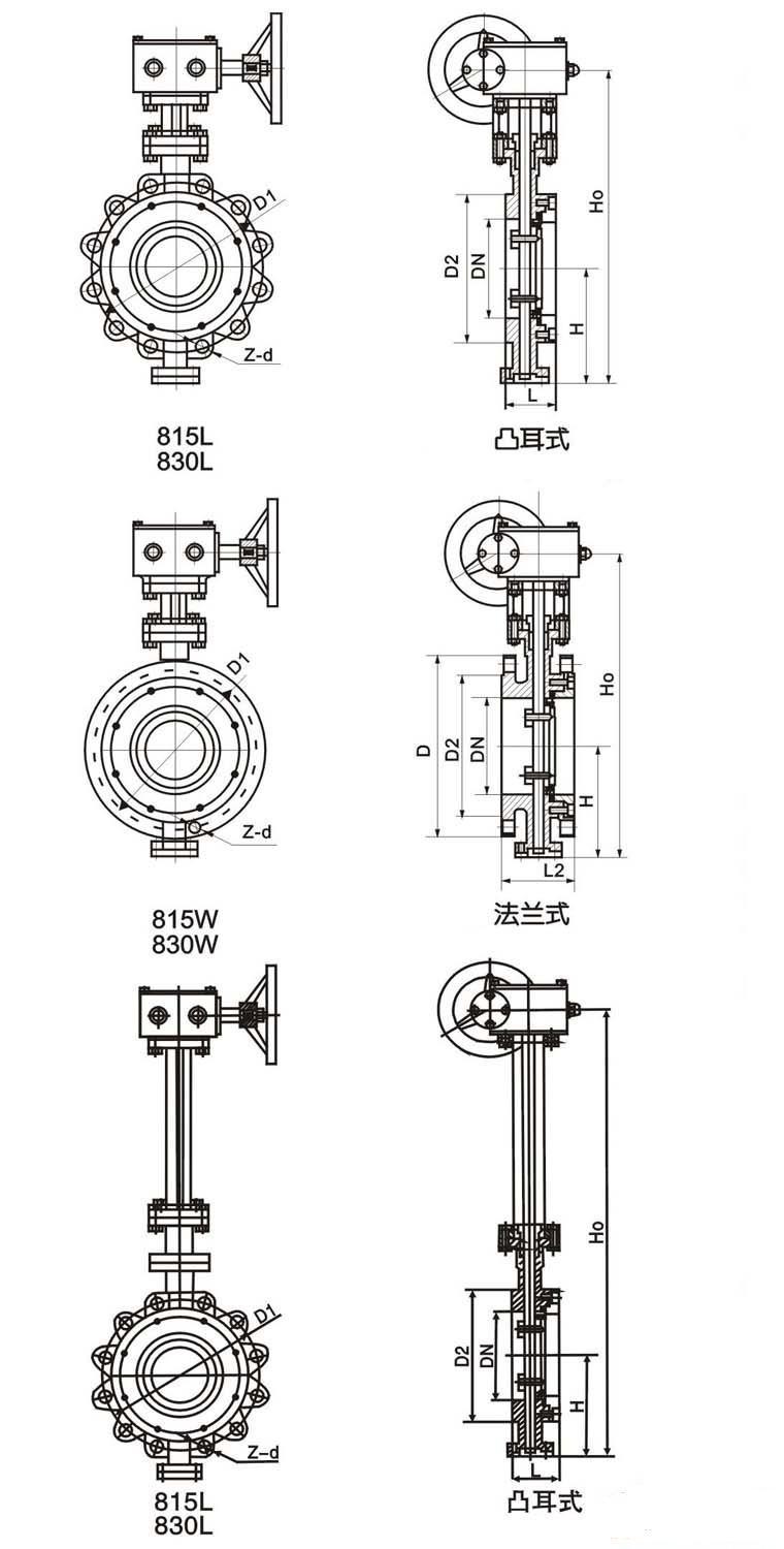 The main structural features of 815 and 830 Series Butterfly valves are clip-type and flange-type tri-eccentric structure. The main structural features of 815 and 830L Series Butterfly valves are convex around the valve body and designed as single flange structure with screw holes. 815 and 830 Series Butterfly valves are widely used in petroleum, chemical and industrial environmental protection water treatment, high-rise buildings, feeding and discharging. Water and other pipes. Its characteristics are: