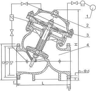1, floating ball 2, flow control valve 3, filter 4, main valve.