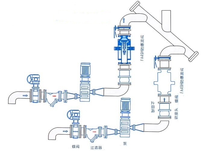 FA49H explosion-proof valve is a water safety valve that can block water hammer and eliminate destructive water hammer. Usually installed in the front of the engineering pipeline, consisting of a number of safety valves and a buffer spring structure, when the water hammer is formed but does not cause damage, the buffer spring will dissolve the water hammer when the formed water hammer is sufficient to destroy the subsequent equipment, the safety valve group acts. The equipment behind the explosion proof wave valve is prevented from being impacted by water hammer, so that the system is protected and the facilities operate normally. The valve is safe and reliable, without detonating after detonating, and it can be used continuously and has long service life.