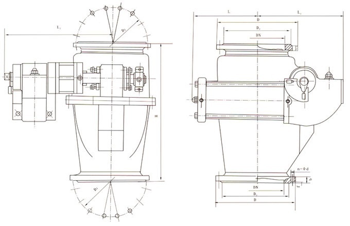 公稱壓力PN | 公稱通徑DN | D | D1 | D2 | b | f | n-φd | L | L1 | L2 | H | 管接頭 | 氣缸型號 |
