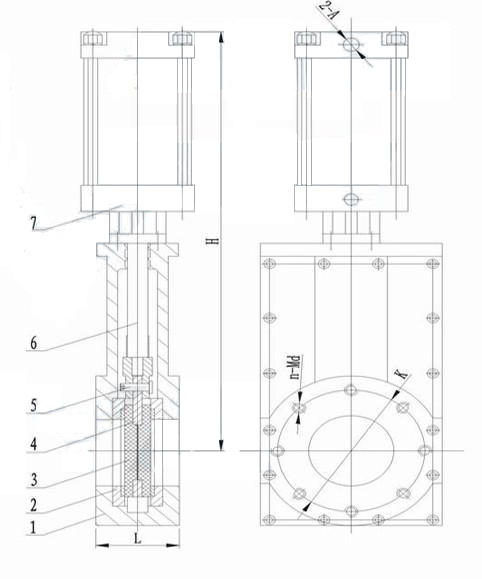 當(dāng)氣缸通過閥桿帶動閘板下行時,閘板與閥體密封面吻合,將通道切斷,即為關(guān)閉;反之則為開啟。
