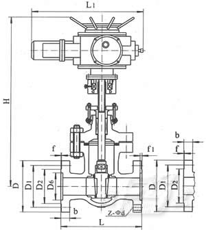 電動(dòng)法蘭閘閥 主要外形尺寸